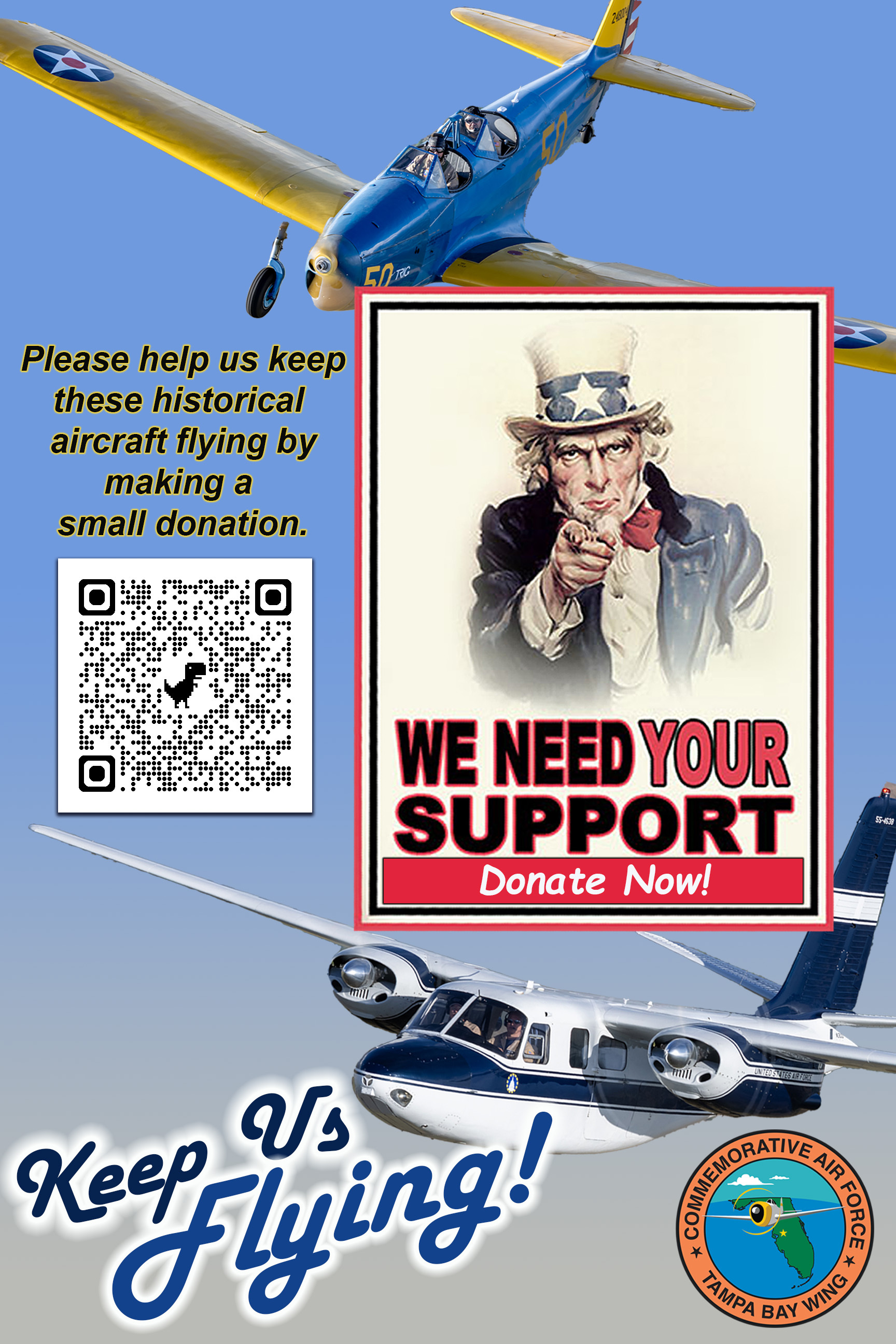 Please use the link below to make your donation today. Thank you for your Donations and support of the CAF-Tampa Bay Wing - a 501(c)3 non-profit organization.